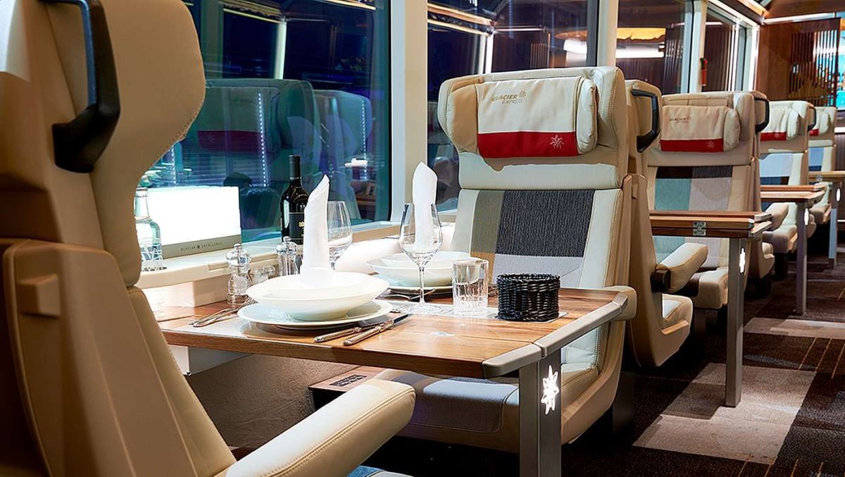 Mit dem Glacier Express unterwegs zu sein, gilt als bequemste Art, durch die Schweiz zu reisen. Mit der neuen Excellence Class wird die Fahrt zwischen St. Moritz und Zermatt noch komfortabler.