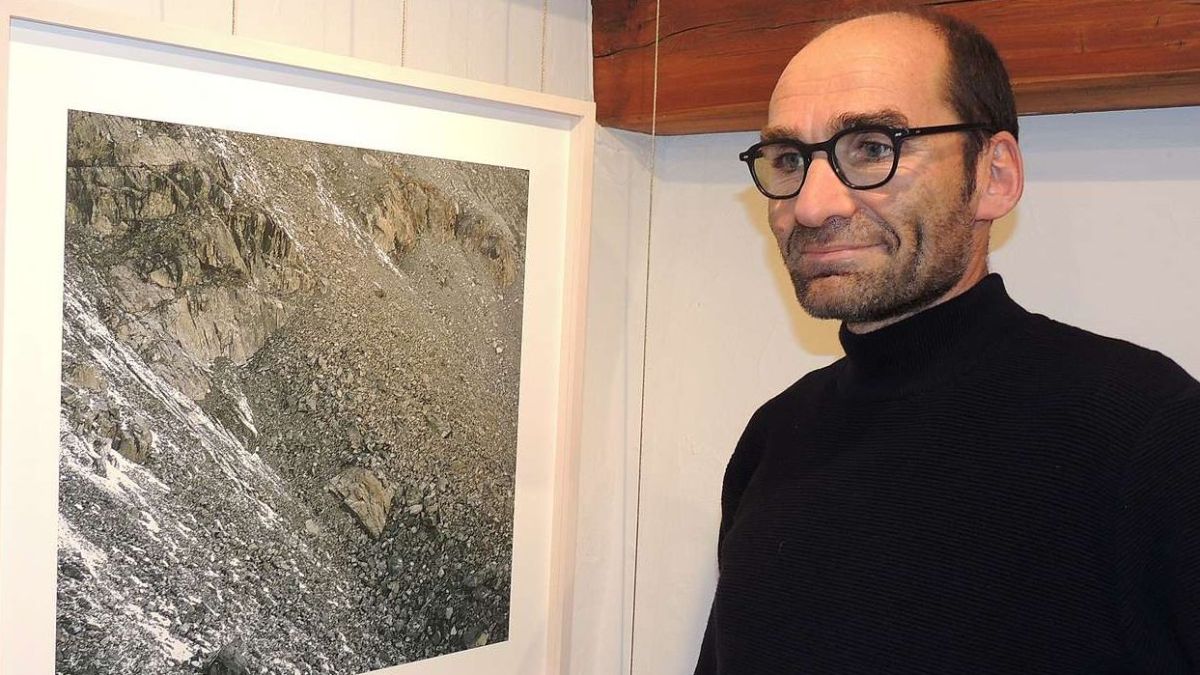 Il fotograf Stephan Husen preschainta sias fotografias a Sent (fotografia: Benedict Stecher).
