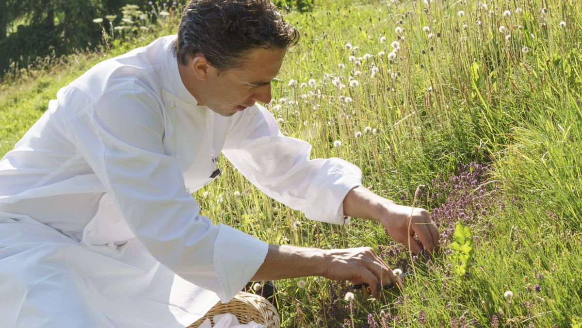 Fabrizio Zanetti verwendet täglich frische Kräuter in der Küche des Hotel Suvretta House. Bei einer Bergkräuterwanderung erzählt der Küchenchef von seinem Lieblingsgericht, und warum er Heusuppe gar nicht toll findet.