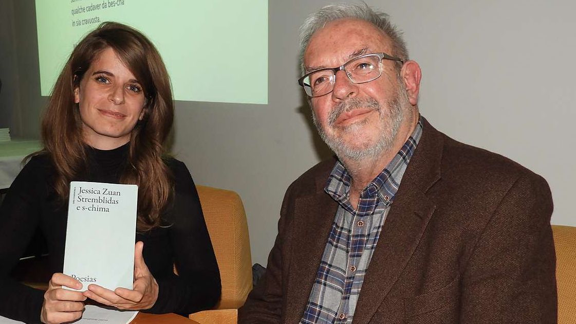 Jessica Zuan e Chasper Pult han analisà singulas poesias dal cudesch «Stremblidas e s-chima» (fotografia: Annatina Filli).