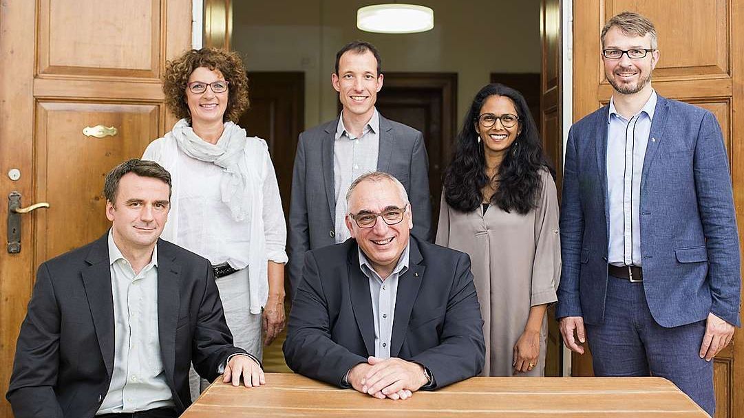 La direcziun davovart da schnestra: Carmen Dedual, Andreas Gabriel, Gianna Olinda Cadonau e Conradin Klaiss. Davantvart da schnestra: Daniel Telli e Martin Gabriel (fotografia: Lia Rumantscha).