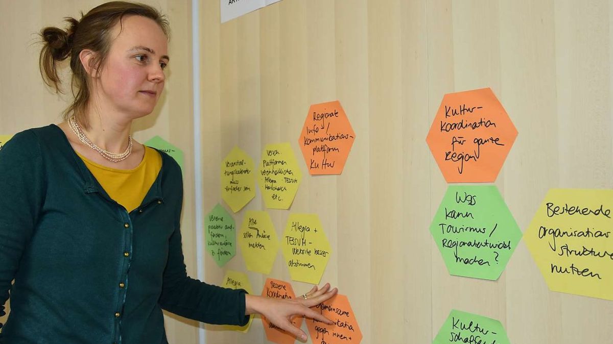 La sviluppadra regiunala Martina Schlapbach ha ramassà ils bsögns e giavüschs dals partenaris da cultura in Engiadina Bassa e Val Müstair (fotografia: Nicolo Bass).