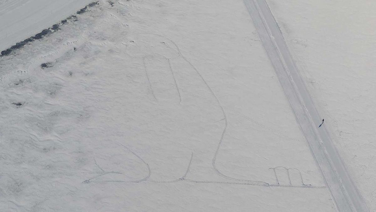 Die Samedner Umweltschützerin Marianne Steiger hat nach Friedenstaube, Steinbock, Kamel oder Mammut heuer ein Walross in die Schneedecke des Champfèrersees gestampft. Doch kaum war das Walross geboren, fiel es Wärme und Wind schon wieder zum Opfer.