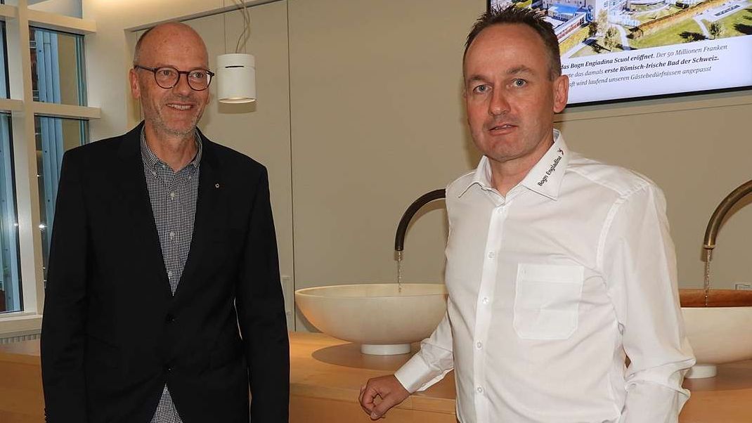 Gion J. Fravi (a schnestra), il president dal cussagl administrativ, e Claudio Duschletta, il mainagestiun, han infuormà davart la situaziun actuala dal BES. fotografia: Annatina Filli