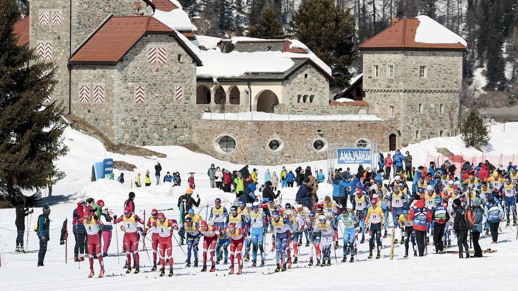 Start zum 15 Kilometer-Lauf der Männer in Silvaplana Foto: swiss-ski