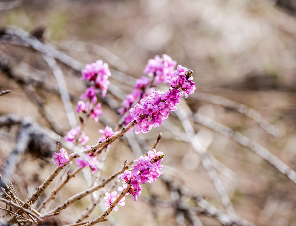 Kaum ist der Schnee am Waldrand geschmolzen, frohlockt schon hier und dort der Echte Seidelbast (Daphne mezereum) mit seinen zart duftenden, rosa bis purpurroten Blütenständen, welche die ansonsten noch blätterlosen Zweigspitzen verzieren.