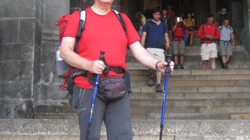 Jon Andrea Grond es i a pè da Müstair fin pro la catedrala da Santiago de Compostela (fotografia: Jon Andrea Grond).