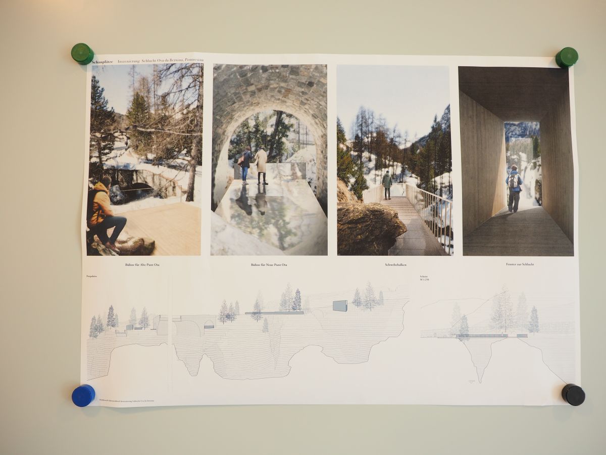 Die Wildwasserschlucht Ova da Bernina im Ortszentrum von Pontresina soll besser erlebbar werden. Die vier siegreichen Projekte des Ideenwettbewerbs der Gemeinde sind noch diese Woche im Rondo ausgestellt.