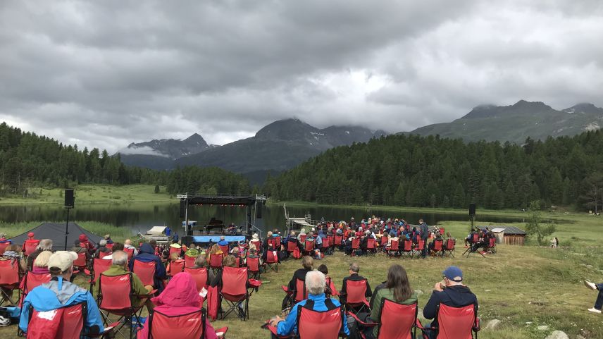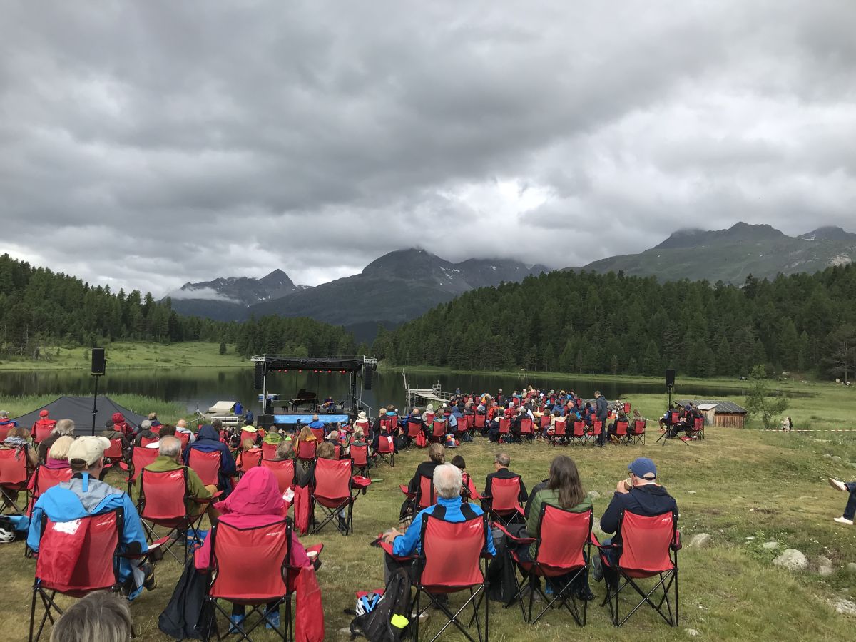 Der amerikanische Jazzgitarrist Lee Retonour und der Schweizer Pianist Thierry Lang haben das Set am Sonntag Morgen anlässlich des Festival da Jazz bespielt. Ein wunderbarer Auftakt in stimmungsvoller Kulisse am Stazersee. Heute Abend um 19.00 Uhr spielt dort Angélique Kidjo.