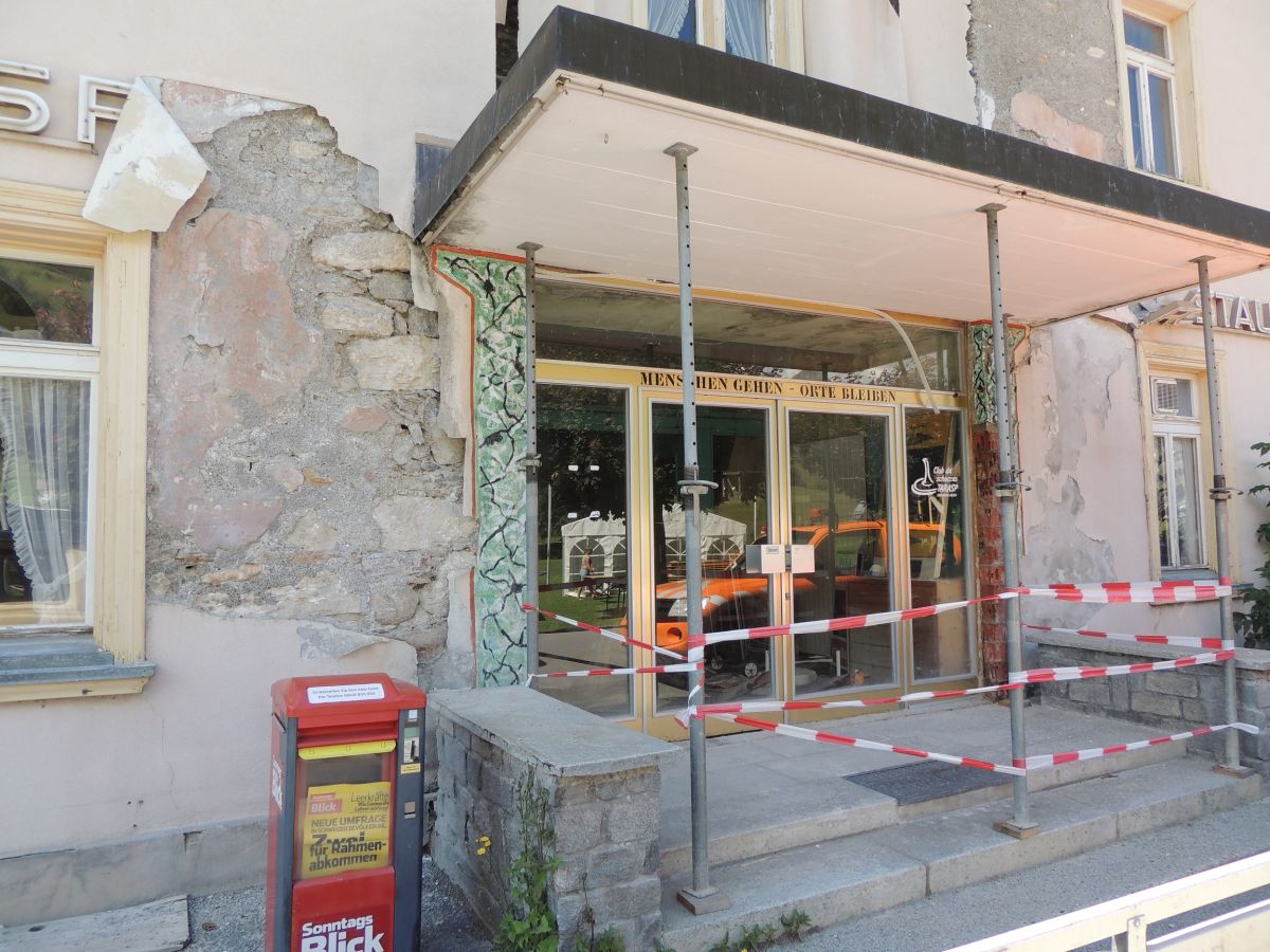 L’entrada vers la via da cumün da l’Hotel Tarasp ha stuvü gnir sgürada (fotografia: Benedict Stecher).