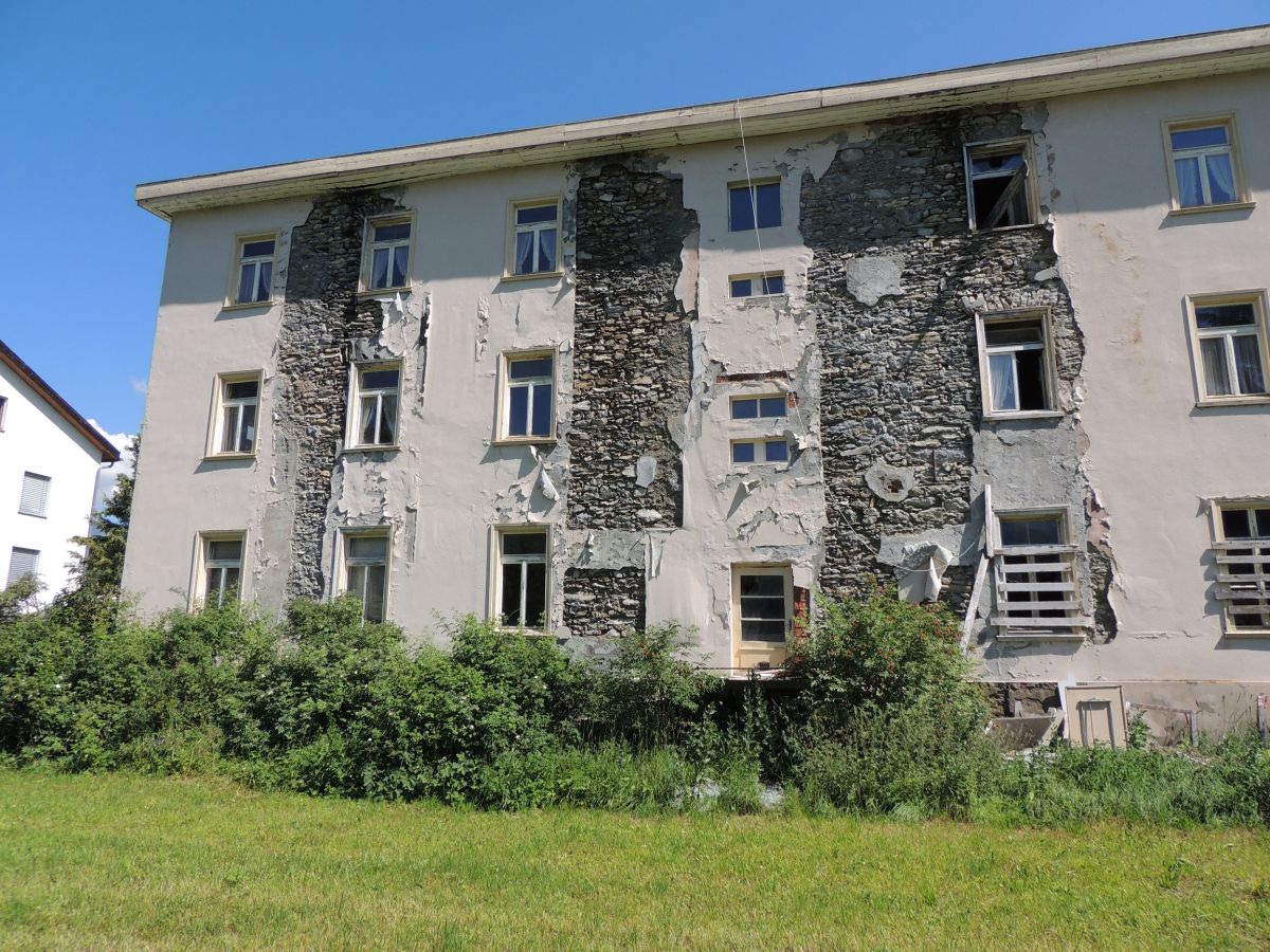 Ed impustüt la fatschada vers vest es in ün stadi desolat (fotografia: Benedict Stecher).