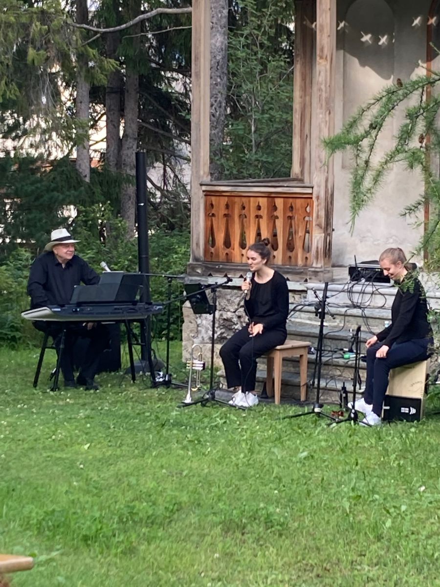 Il Steidle Trio da San Murezzan, chi consista da Werner Steidle e sias duos figlias Sabrina e Valeria, ho realiso il prüm concert d’üert. El es cuntschaint per sieu vast repertori chi cumpiglia musica classica, jazz scu eir musica populera. Illa Chesa Planta Samedan, il center culturel per la cultura e lingua rumauntscha, haune pünavaunt suno e chanto varsequauntas chanzuns rumauntschas. La particularited da l’occurrenza es steda, cha la giuvna S-chanfinra Selina Duschletta ho prelet quella poesia cun la quela ella ho gudagno dal 2019 il prüm premi da la concurrenza da scriver «Pledpierla» da la Lia Rumantscha. Il Steidle Trio ho in seguit preschanto lur versiun musciala da la poesia – e s-chaffieu uschè üna nouva chanzun putera: Che bel, cha trais abitants da San Murezzan haun – scu cha Selina scriva in sia poesia – «surpiglio la respunsabilted, per la cultura e l’identited.»