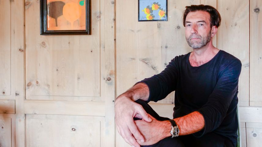 Hans «gia» Schmid e purtrets da l’exposiziun «Sweet Courage». fotografia: Jon Duschletta