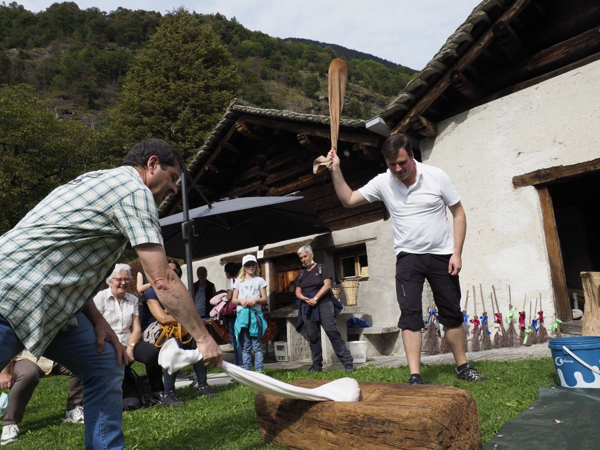 Die diesjährige Kastanienernte wird im Bergell frühestens in einer Woche beginnen. Doch schon jetzt konnten sich Interessierte im Rahmen einer «Battitura» in den Verarbeitungsprozess der Edelkastanie einweihen lassen.
