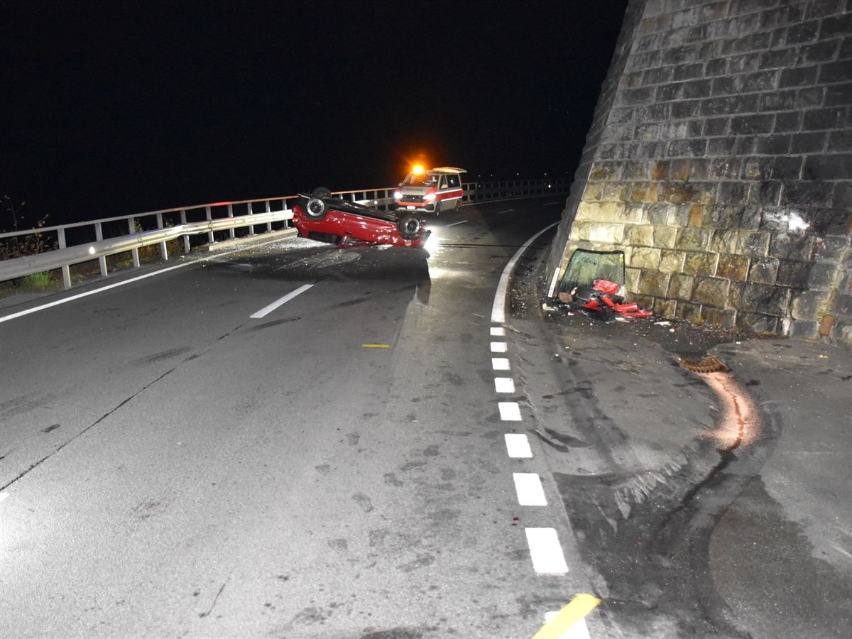 Der 19-jährige Junglenker fuhr am Donnerstag nach 01.30 Uhr von Le Prese kommend über die Berninastrasse entlang dem Lago di Poschiavo in Richtung Miralago. In einer links-rechts-Kurvenkombination verlor der junge Mann die Herrschaft über sein Fahrzeug und kollidierte mit einer rechtsseitigen Stützmauer. Die Wucht katapultierte das Auto überschlagend zur linksseitigen Leitplanke und es kam schlussendlich auf dem Dach liegend auf der Fahrbahn zum Stillstand. Der Lenker konnte selbständig und unverletzt das Auto verlassen. Die Kantonspolizei Graubünden klärt die Unfallursache ab.