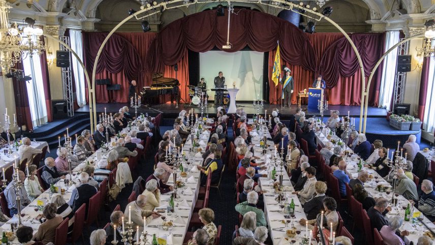 Festlich gedeckte Tischreihen im Hotel Reine Victoria: 180 Gäste wurden von der Küchen- und Servicecrew des Hotels Laudinella/Reine Victoria bewirtet.
