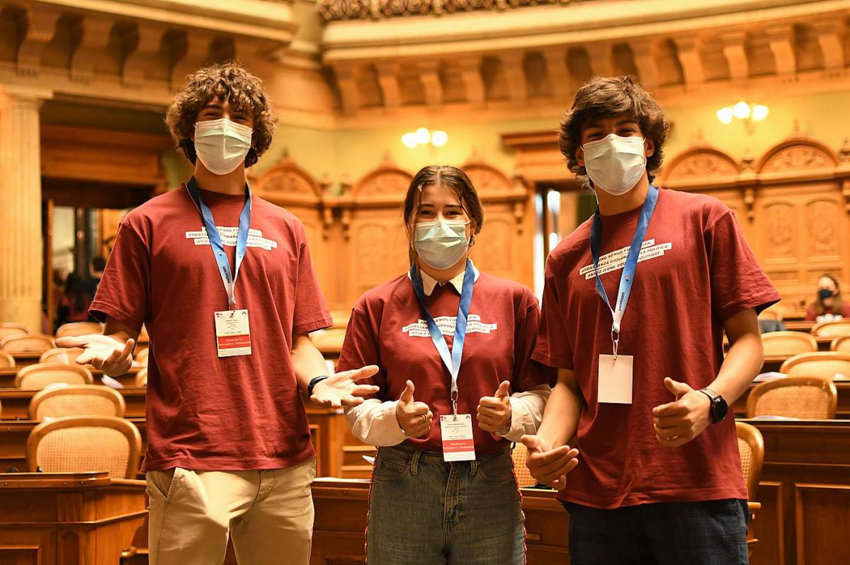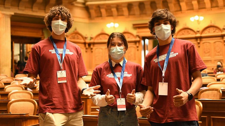 Maurin Egger, Laura Koppenberg und Aronne Beti (von links) haben vier lehrreiche Tage in Bern verbracht. Die Gruppen haben ihre Forderungen im Bundeshaus präsentiert. Manche wurden an den National- und Ständerat weitergereicht. Foto: Jugendsession