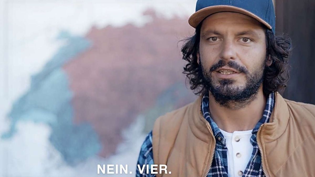 Tino Andri ha üna pitschna rolla illa reclama da la Emmi chi manzuna il rumantsch sco quarta lingua naziunala (fotografia: screenshot Emmi).