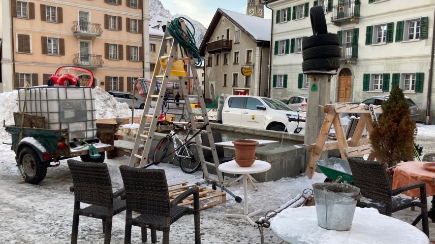 La plazza cumünla da Sent preschainta il mantun da Babania (fotografia: mad).