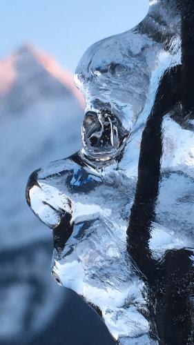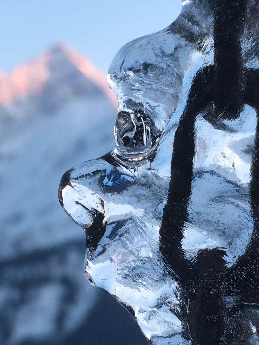 Aus 50 Einsendungen sind die Würfel über das Gewinnerfoto durch das Publikumsvoting und den finalen Entscheid der Jury gefallen: für die kleine Eishexe am Eingang zur Eisgrotte am Morteratschgletscher. So klein und unscheinbar das Hexengesicht auch ist, so vergänglich ist es und wird vermutlich schon heute nicht mehr an Ort und Stelle darüber wachen, dass niemand die gefährliche und deshalb gesperrte Eisgrotte betritt.