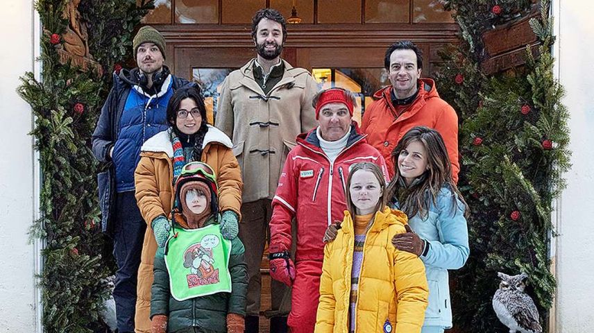 Michiel ten Horn (redschia), Sinem Kavus, Isacco Limper, Martijn Hillenius (scenari), Daniel Rohr, Bobbie Mulder, Jeroen Spitzenberger ed Elise Schaap davant l’Hotel Val Sinestra. fotografia: Zodiac Pictures