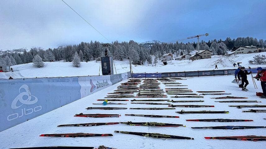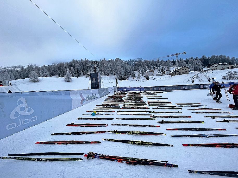 Ils skis da las curriduras professiunelas cuort aunz la partenza (fotografia: Martin Camichel).