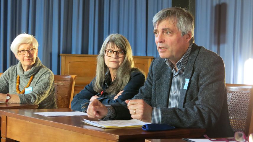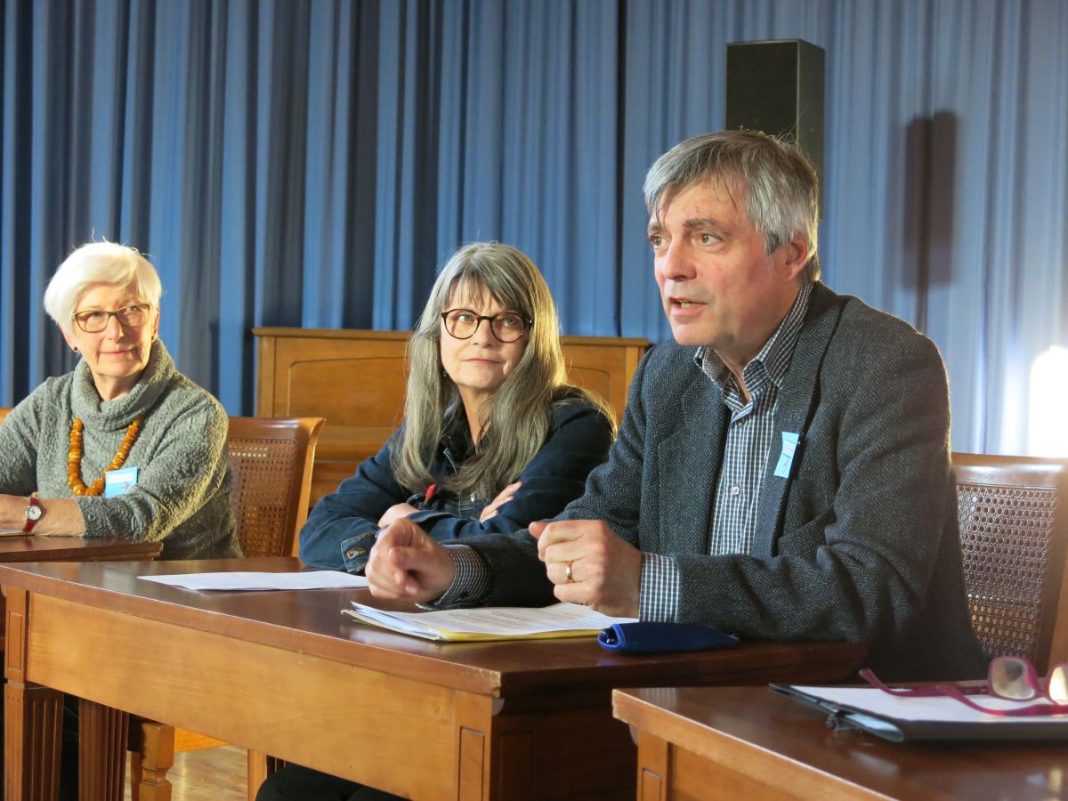 Yvonne Schmid (von links), Marianne Lüthi und Martin Lehmann schildern unerwartete Tierbesuche (Foto: Bettina Gugger).