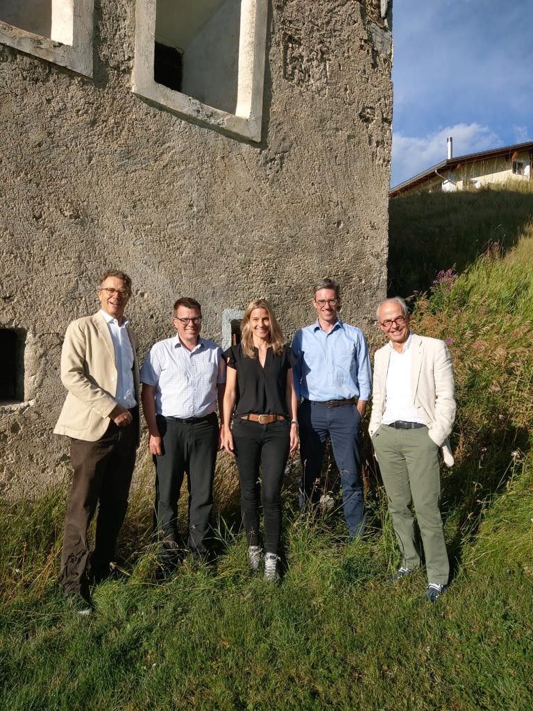 Ils commembers da fundaziun da Rokj Engadin und Bündner Südtäler – (da schnestra) Markus Hauser, Michael Roth, Annatina Taisch, Roman Grossrieder e Richard Dillier (fotografia: mad).