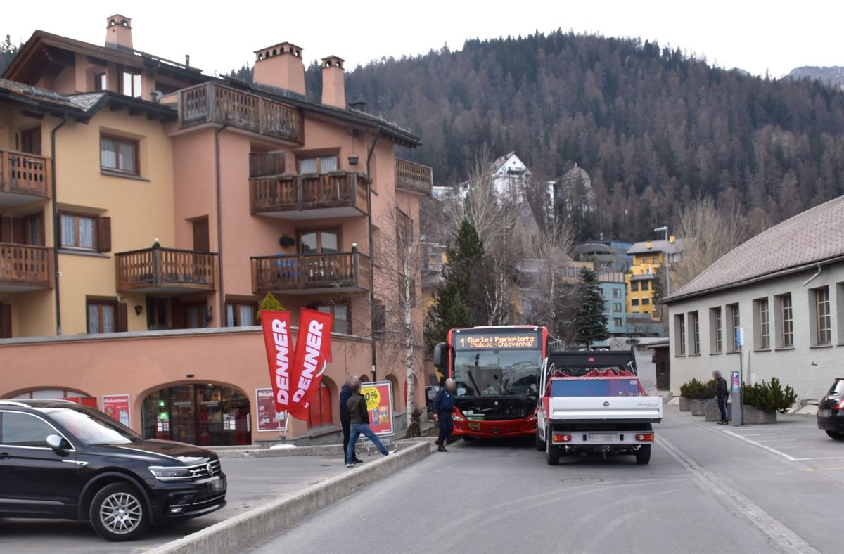 Um 18.15 Uhr fuhr der Chauffeur des Lieferwagens auf der Via Ludains in Richtung Via Grevas. Zur gleichen Zeit kam ihm ein Linienbus entgegen. Die beiden Fahrzeuge kollidierten frontal, worauf eine 73-jährige Buspassagierin den Kopf an einem gegenüberliegenden Sitz anschlug. Eine Ambulanz der Rettung Oberengadin leistete Erste Hilfe und überführte die Verletzte ins Spital nach Samedan. Die Kantonspolizei Graubünden ermittelt die Unfallursache.