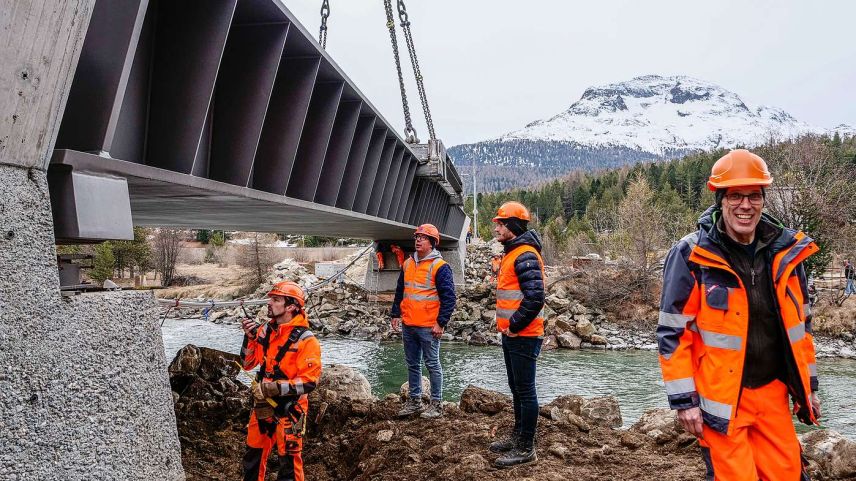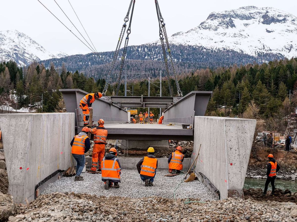 Am Freitag wurde bei Punt Muragl in einer spektakulären Aktion die historische RhB-Stahlbrücke über den Flaz durch eine moderne Stahlkonstruktion ersetzt. Zahlreiche Schaulustige verfolgten die Arbeiten. Im Mai werden in Samedan zwei weitere Brücken ersetzt.