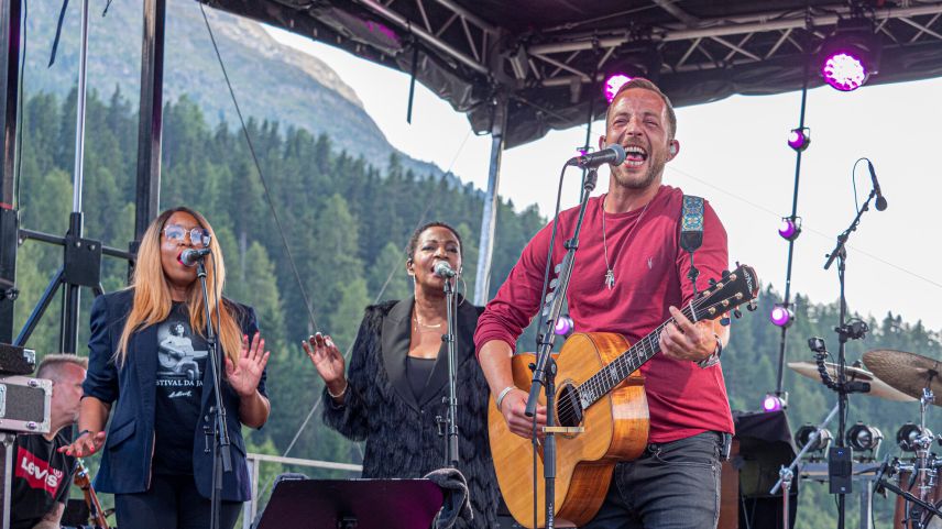 Ihm jedenfalls hat die fantastische Kulisse in der Engadiner Abendsonne ein Lachen ins Gesicht gezaubert, aber nicht die Stimme verschlagen. Im Gegenteil, der 38-Jährige legte mit seiner Band gleich leidenschaftlich los. Mit seiner souligen Stimme gab er sich nahbar, charmant und locker. Immer den Kontakt zum Publikum suchend, konnte er seine Vergangenheit als Strassenmusiker nicht verleugnen.