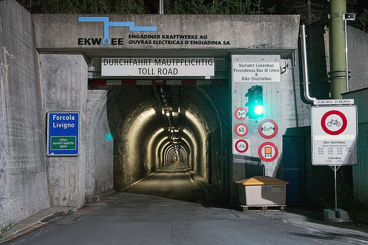 Al tunnel Munt la Schera daja d’inviern adüna darcheu colonnas – l’andamaint cun cumprar il bigliet douvra tenor il Comune di Livigno massa bler temp. fotografia: OEE