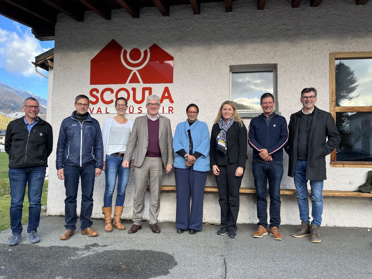 Il cusglier guvernativ, Jon Domenic Parolini e la manadra da l’uffizi per la scoula populara ed il sport, Chantal Marti-Müller, accumpagnats dal manader da l’inspectorat districtual, Curdin Lansel, as han vuglü far ün purtret dal minchadi in üna scoula populara perifera rumantscha. Apaina rivats in Val suna gnüts retschevüts d’üna brajada uffants in scoulina a Valchava. Davo ulteriuras visitas ill’instrucziun in differentas classas primaras a Müstair e sül s-chalin sec I a Sta. Maria han las visitas surgnü üna survista sur da l’organisaziun da la scoula. La presidenta cumünala, Gabriella Binkert e’ls rappreschantants dal cussagl da scoula, Aldo Rodigari e David Spinnler, insembel culs mainascoulas Aita Stupan e Thomas Brülisauer han pudü tematisar diversas intenziuns in ün barat ourdvart constructiv. Cumüns e scoulas a la periferia han d’imprender a viver cun differentas sfidas. Co transfuormar difficultats in abiltats, quai es l’art da mincha minorità. Cullas visitas in scoula e cun l’inscunter cullas instanzas cumünalas ha il departamaint d’educaziun muossà interess per situaziuns da sfida, cha la scoula nu vain laschada suletta culs pissers e respet per la lavur prestada minchadi a favur dals uffants. (cdm/pl)