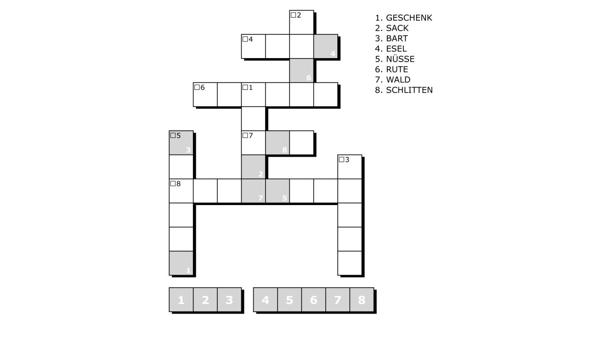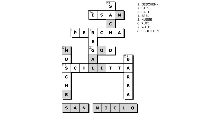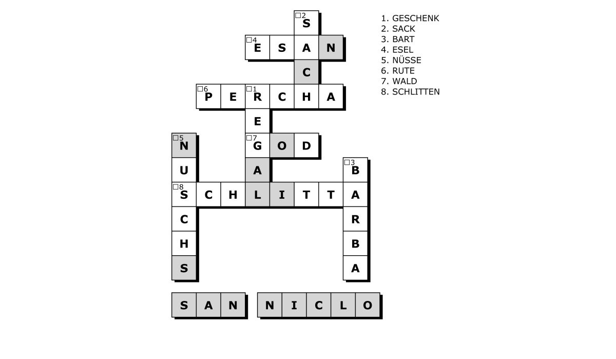 Finde die romanischen Begriffe (Puter) rund um den Nikolaus!