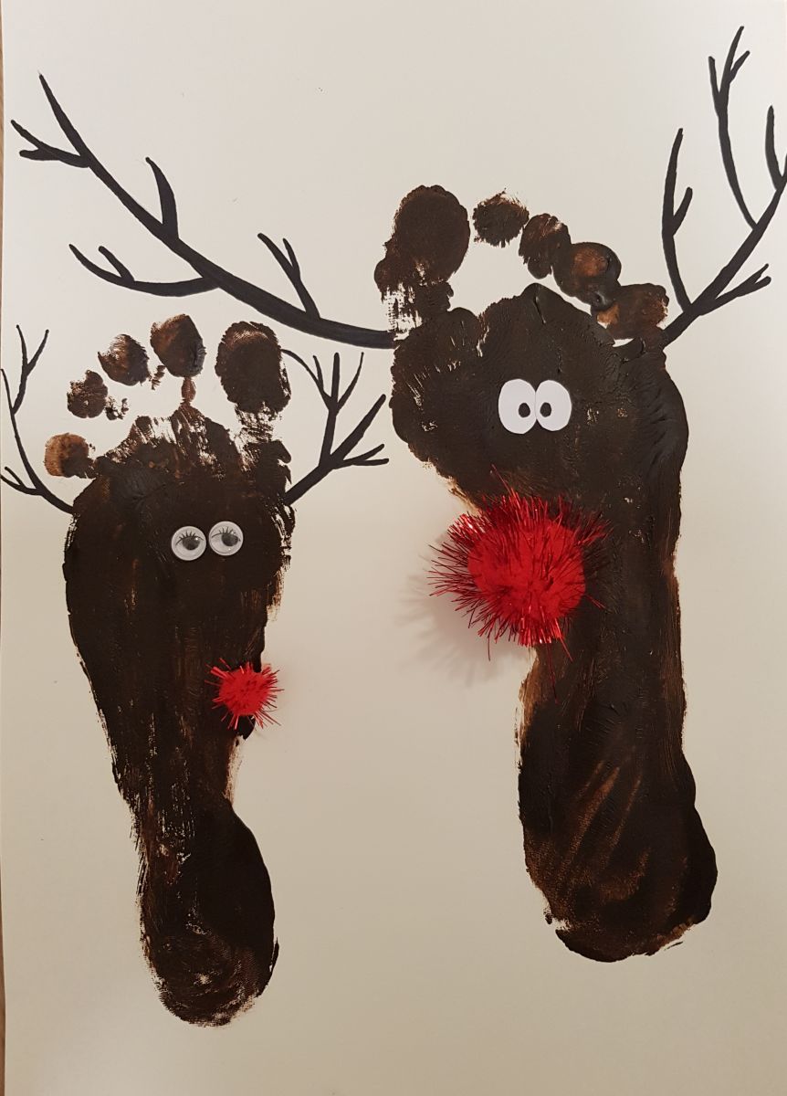 Bedrucke persönliche Rentier-Weihnachtskarten mit deinen Füssen.