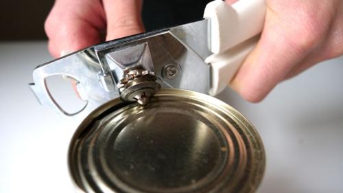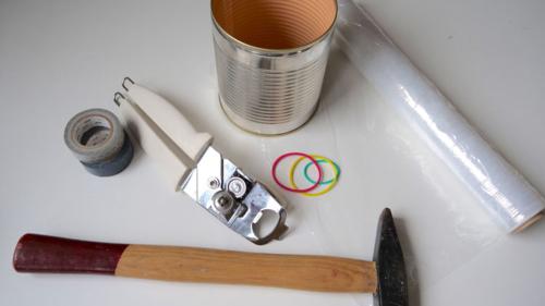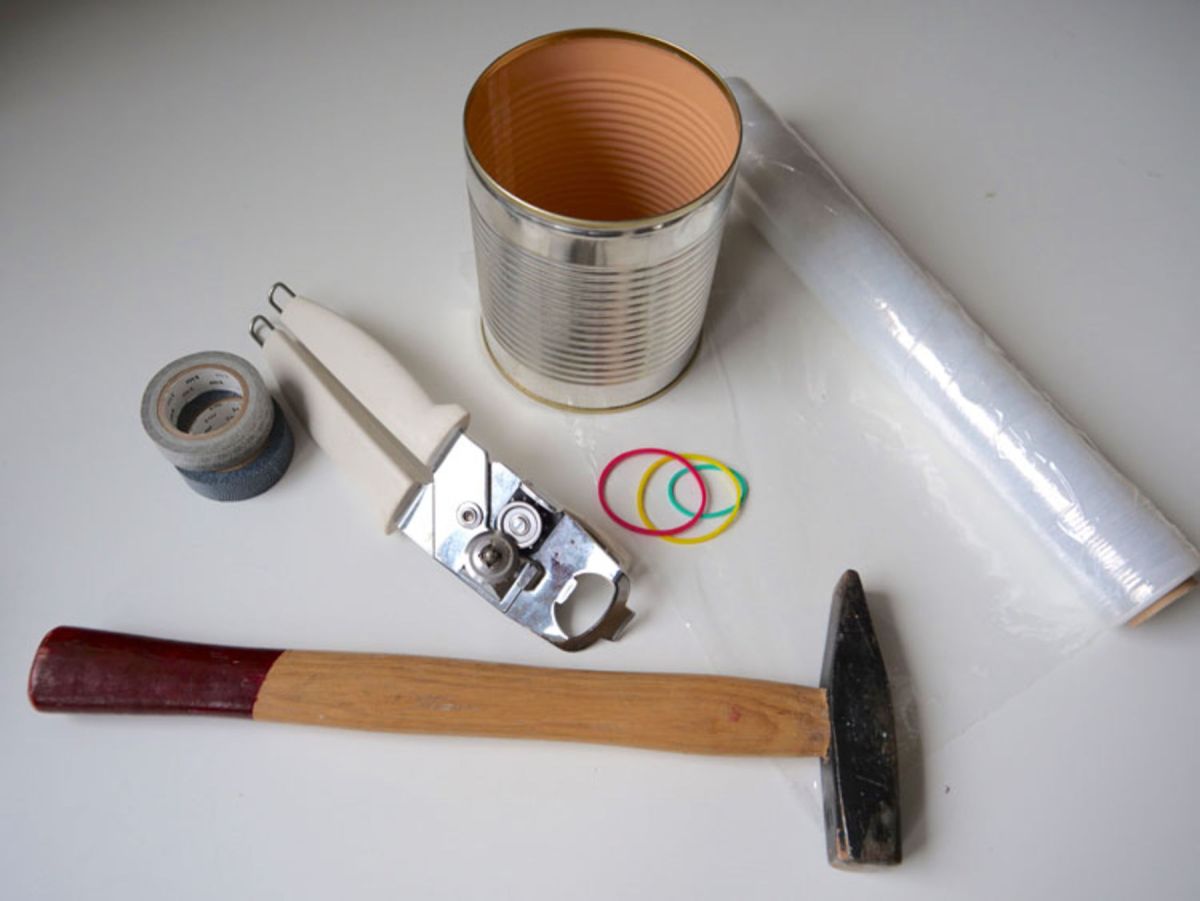 1. Entferne auch die Unterseite der leeren Dose mit einem Dosenöffner.