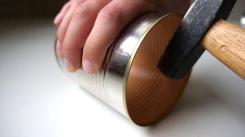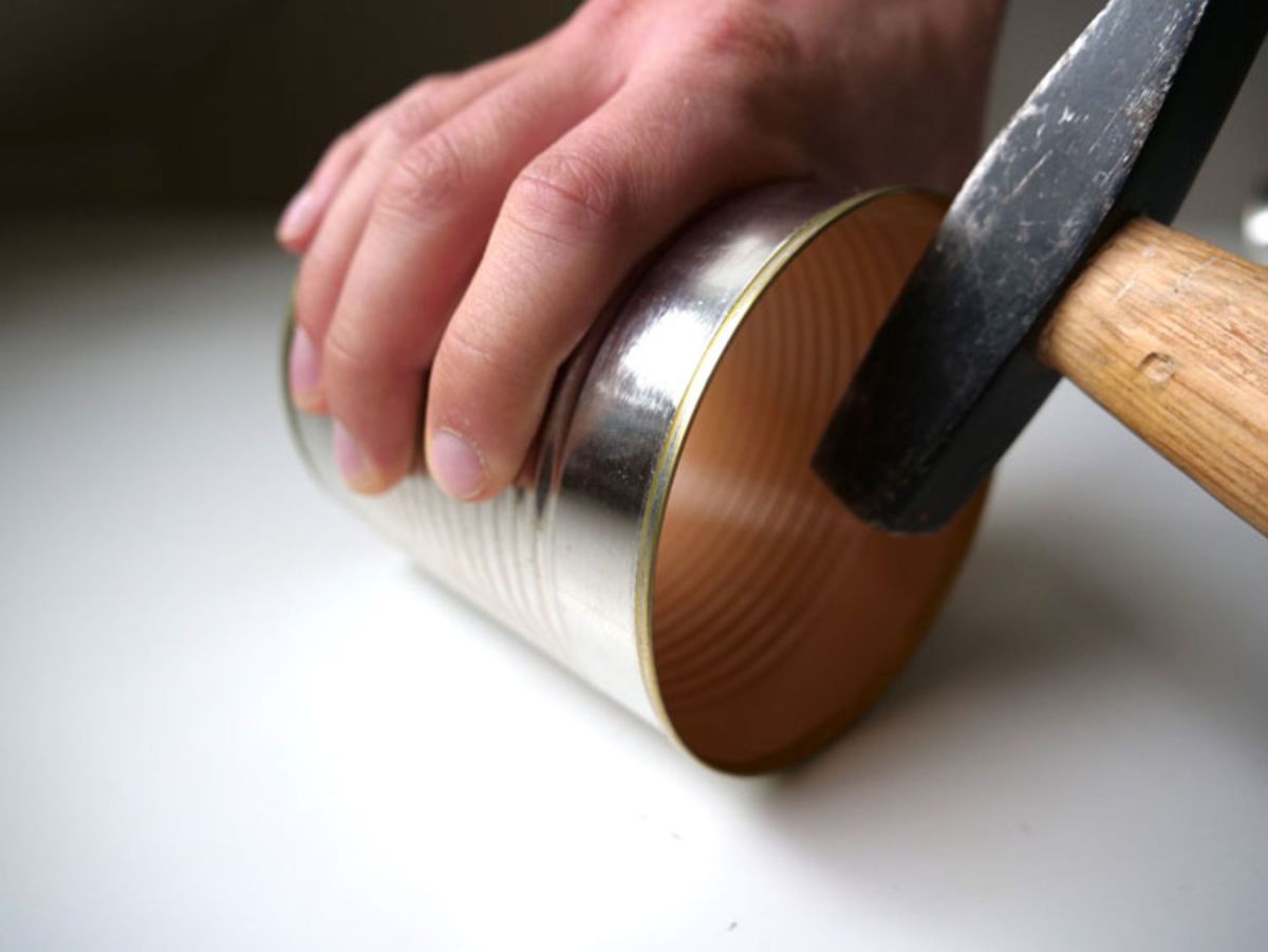 2. Klopfe mit einem Hammer vorsichtig auf die scharfen Stellen, damit du dich nicht an der Dose schneidest.