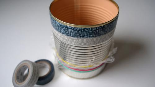 4. Wenn du möchtest, kannst du die Dose noch mit buntem Klebeband dekorieren oder mit wasserfesten Stiften bemalen.