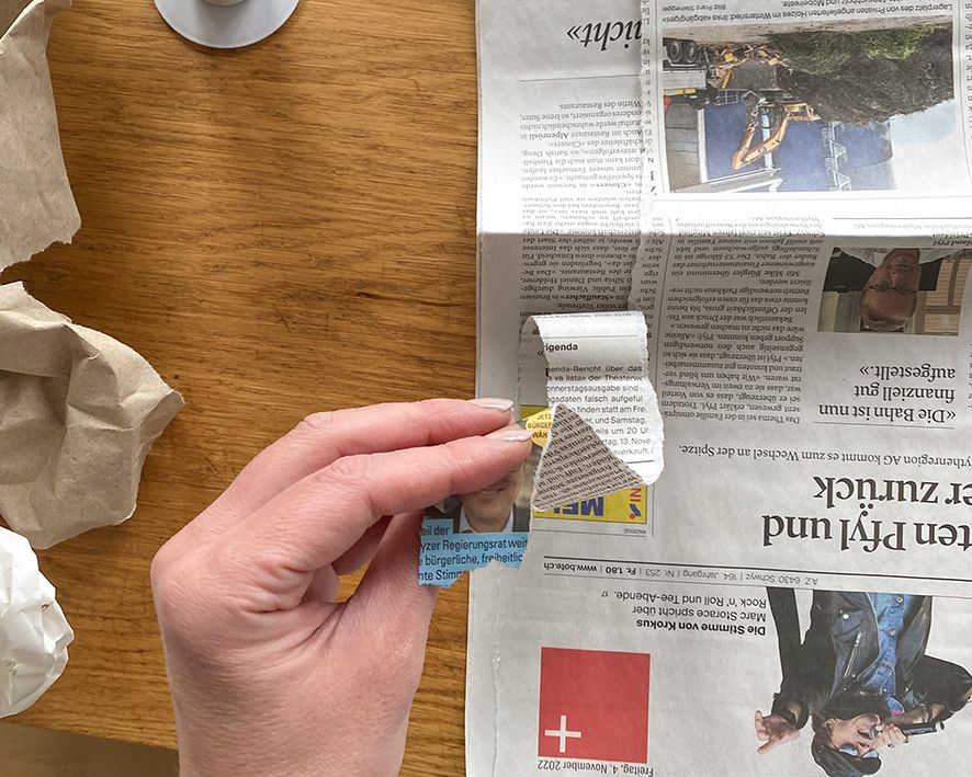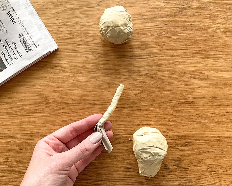 1. Nehmt nun das Packpapier und knüllt es feste zusammen.
