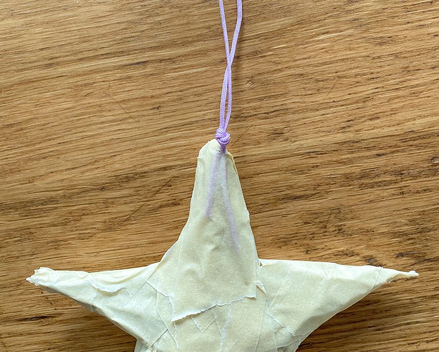 7. Den Nylonfaden zum Aufhängen befestigt ihr einfach mit einem Streifen Klebeband.
