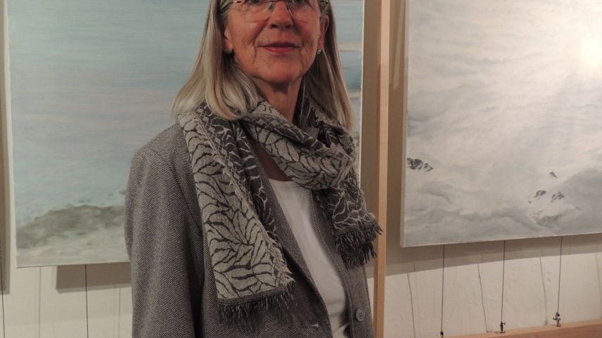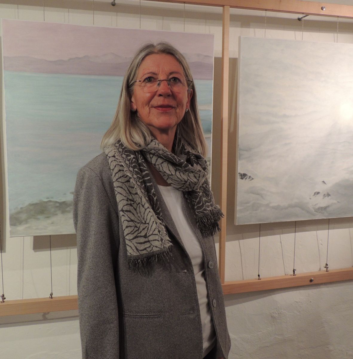 Yvonne Roth immez sias ouvras expostas a Sent (fotografia: Benedict Stecher).