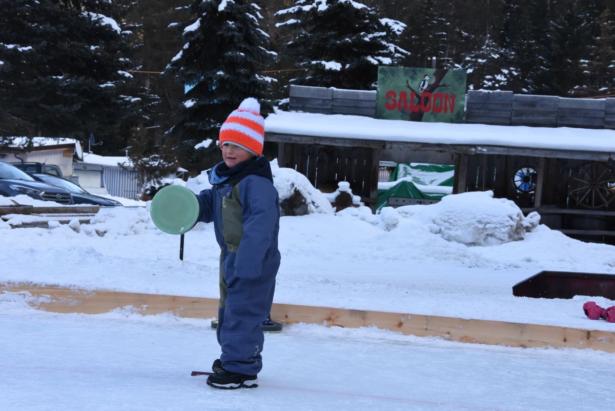 Claudio Puorger, chi’d es respunsabel pel glatsch e pel gö da tschoccas a Sur En, ha muossà pazienza culla brajada d’uffants e minchün ha pudü provar sia furtüna. Davo pac mumaint han las gruppas da prüma fin terza e da quarta fin sesavla classa pudü giovar ün gö in concurrenza e quella gruppa chi rablaiva lur tschoccas il plü dastrusch al puck nair dimmez la chasa da trais sün ses meters surgniva ils puncts. Las reglas dal gö da tschoccas sun sumgliaintas al gö da boccia. Cun stumplar culla tschocca il puckin as poja müdar il center da gö, scha’l puck banduna la chasa tuorna’l darcheu immez. Per üna jada han las mattas gnü daplü furtüna ed eir daplü sentimaint cullas plattas sveltas chi vegnan scrauvgiadas vi da las tschoccas e chi sun la basa per cha las tschoccas sglischan plü svelt o plü plan sül glatsch.