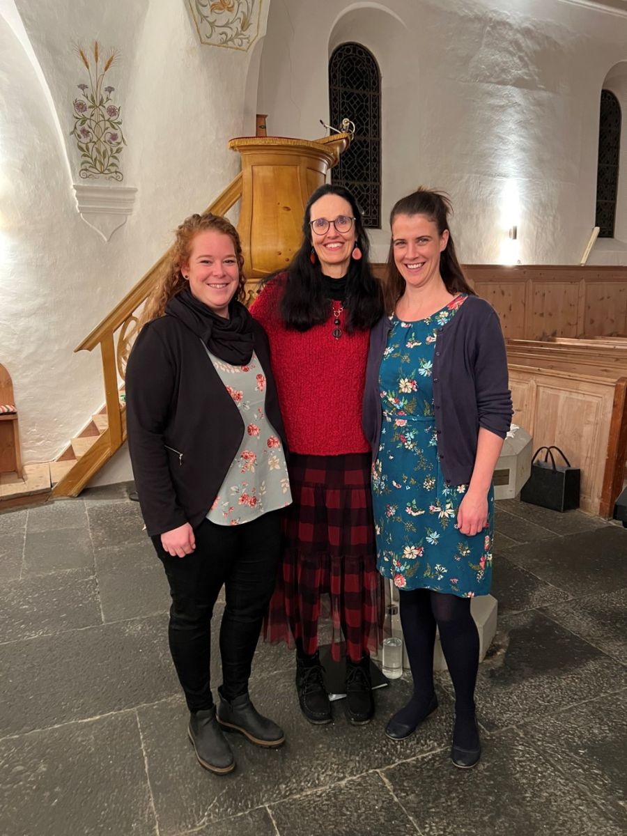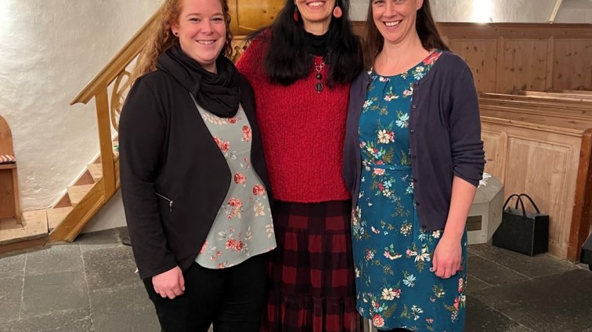 La presidenta dal Club Zonta, Andrea Könz, e las duos chantaduras Sidonia Caviezel (a schnestra) e Nina Mayer (a dretta) (fotografia: mad).