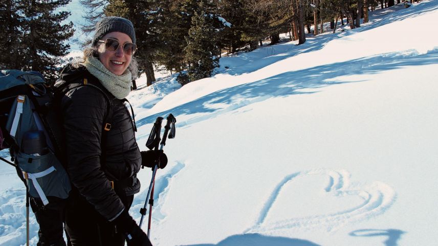 Antonia Eisenhut malt ein Herz für die Natur in den Schnee.