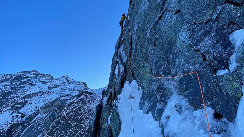Mitte Januar gelang dem Italiener Simone Porta und dem Engadiner Marcel Schenk die vierte Winterbegehung der Via degli Inglesi in der Ostwand des Pizzo Badile. Sie waren die erste Seilschaft, welche die Route im Winter an einem Tag kletterten. Dabei ...