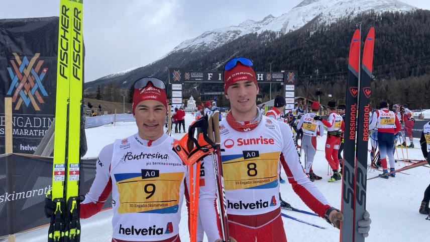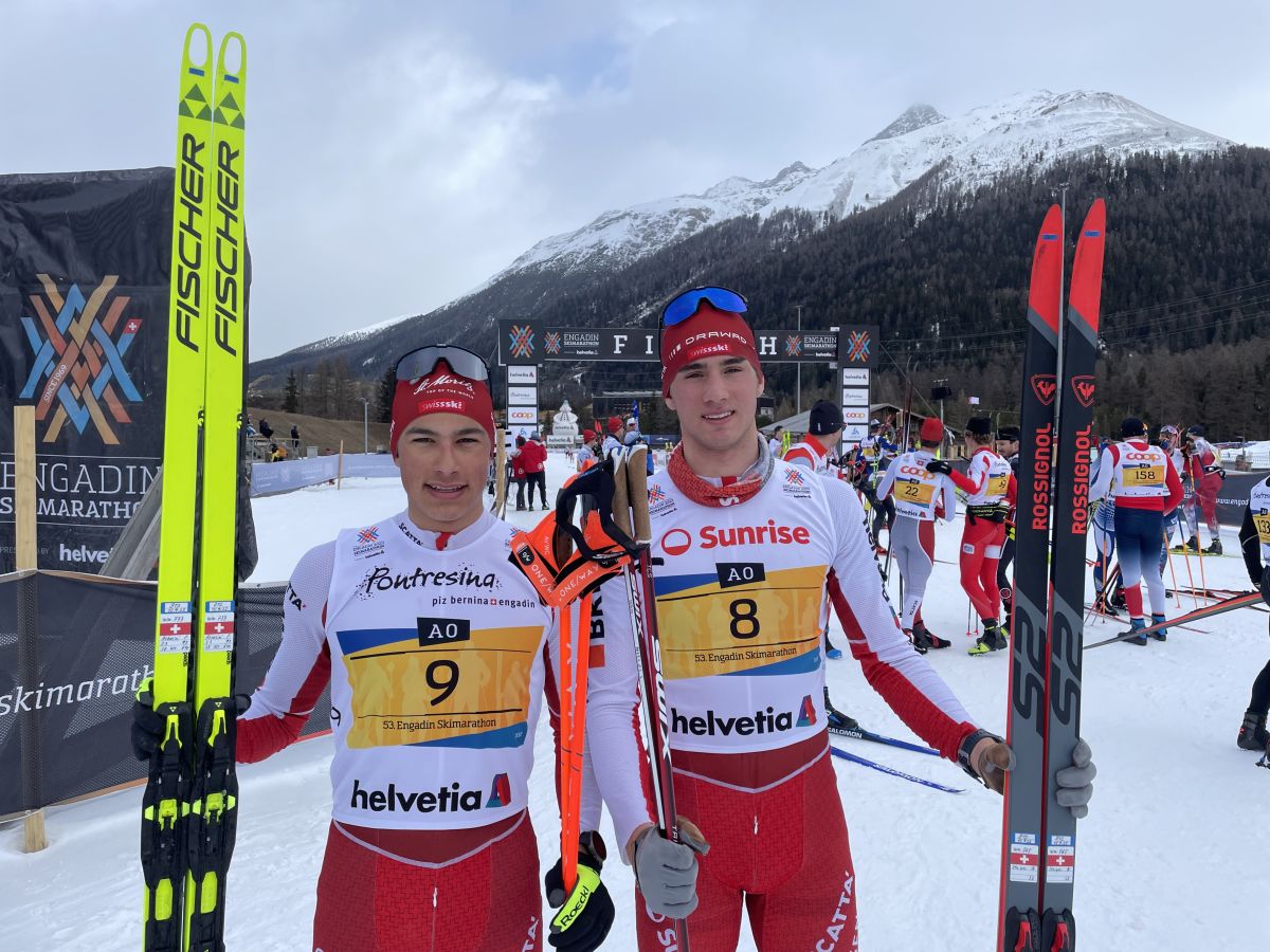 Fabrizio Albasini, St. Moritz und Niclas Steiger, Samedan als 12. und 13. waren die schnellsten Einheimischen am 53. Engadin Skimarathon. Die Beiden zeigten ein beherztes Rennen und leisteten auch Führungsarbeit und kamen mit dem Spitzenfeld ins Ziel. Dario Cologna wurde 14.