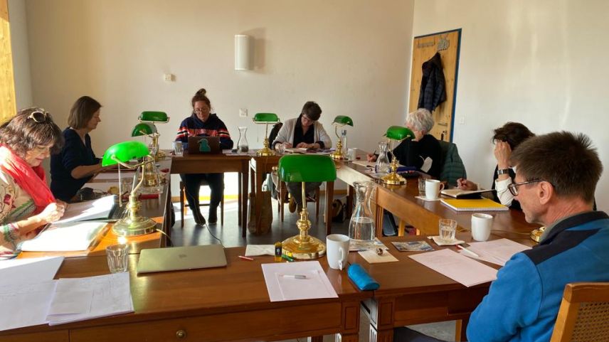 Die Schreibkurse von Angelika Overath und Manfred Koch finden im Gemeindehaus (Chasa Misoch) in Sent oder bei schönem Wetter auch draussen statt. Foto: z. Vfg