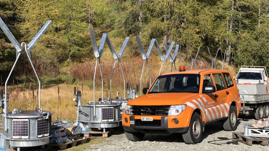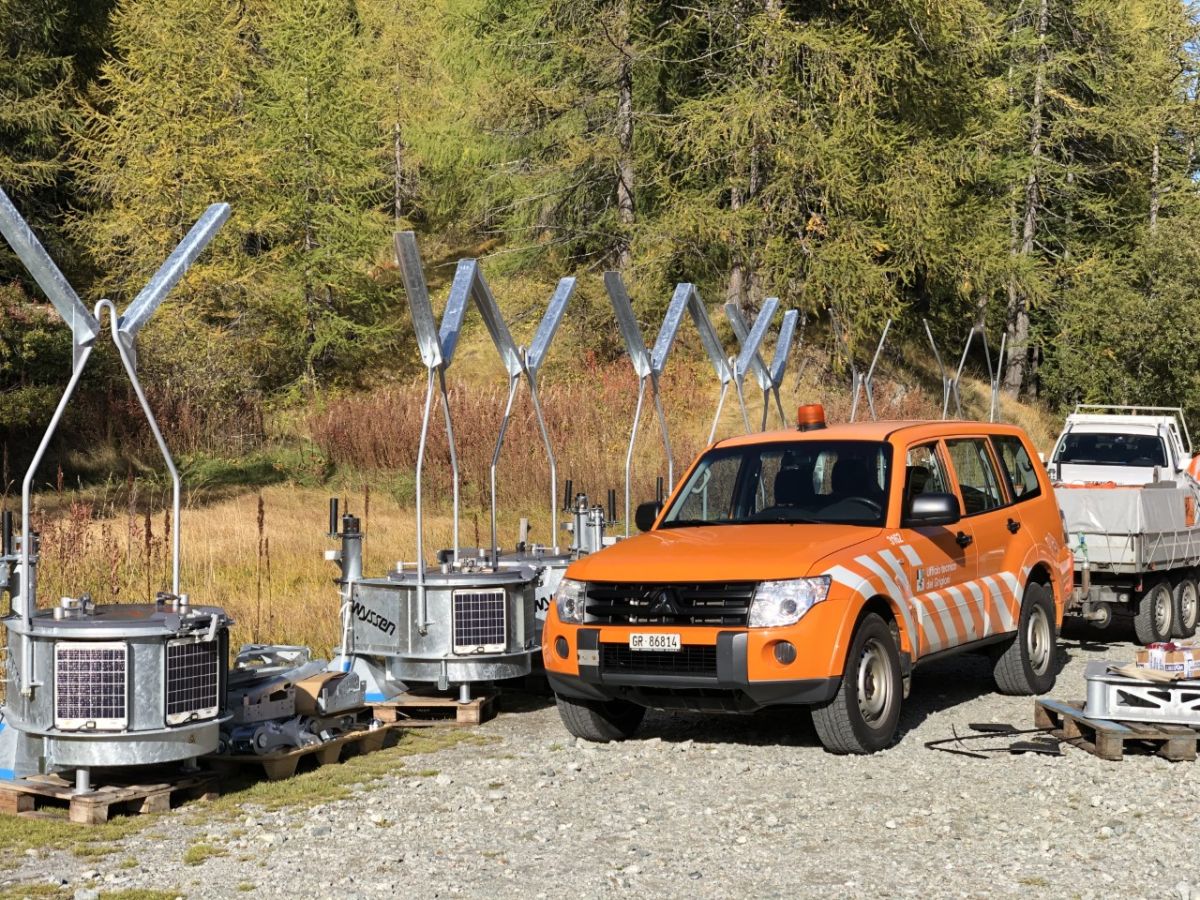 Die Aufsätze der Lawinensprengköpfe vor dem Aufbau letzten Herbst. Foto: Marie-Claire Jur