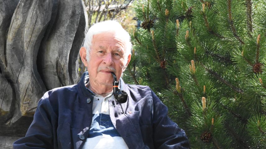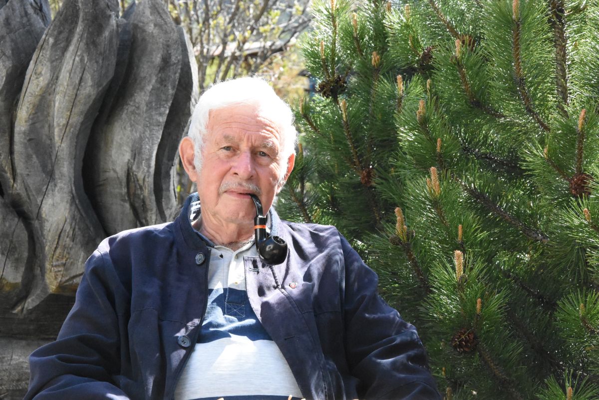 Tradiziunalmaing culla püppa in bocca refletta Peter Roth in seis üert davant chasa a Sta. Maria sur da seis temp sco spazzachmin e portafurtüna (fotografia: Nicolo Bass).