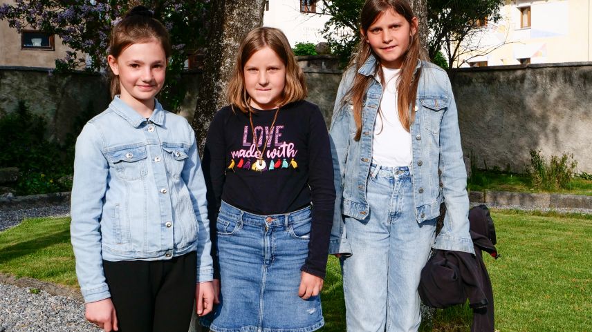 Ils vendschaders da la categoria 5./6. classa: Laila Thoma, Burtel Defila, Gloria Pietrogiovanna (fotografia: Jon Duschletta).